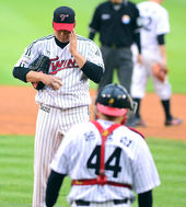 2013.05.26 19: 06만루 위기서 마운드 내려오는 류제국