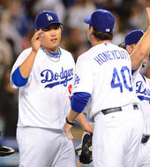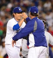 2013.05.29 16: 22류현진,'매팅리 감독님! 완봉승 거뒀어요'