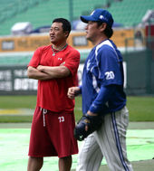 2013.05.29 17: 09이야기 나누는 조인성-진갑용,'우천 취소, 어느 팀에게 이득?'