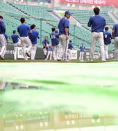2013.05.29 17: 07비가 내리는 그라운드에서 훈련하는 삼성 선수들