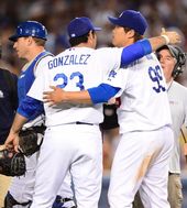 2013.05.29 20: 43곤살레스로부터 완봉구 받고 축하받는 류현진
