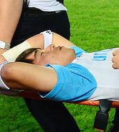 들것에 긴급히 실려나는 정훈, 큰 부상이 아니길...
