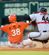2013.05.30 19: 54홈 쇄도 막아내는 윤요섭, '공은 반드시 지킨다'