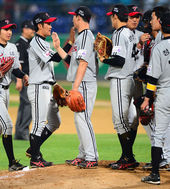 2013.05.31 22: 23승리투수 신정락,'코치들에게 쓰담쓰담'