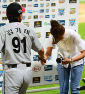 2013.05.31 21: 41정인영 아나운서,'김기태 감독에게 고개숙여 악수!'