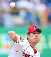 KIA 선발 윤석민,'힘차게 공을 뿌리며!'