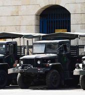 격전지 레바논 경기장 앞 늘어선 군사시설, 긴장감 팽팽