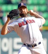 두산 선발 올슨의 역투