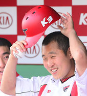2013.06.02 17: 06윤석민,'삭발 머리 감추기 위해 헬멧써요!'