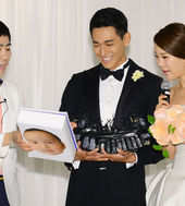 2013.06.02 14: 59만세삼창 외치는 정석원과 그옆에서 행복한 새신부 백지영