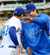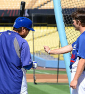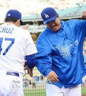 2013.06.05 11: 06류현진,'크루스와 세리모니 맞춰요~'