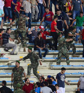 2013.06.05 04: 46긴급 대피사태, 군인 진압에 어수선한 레바논 관중석