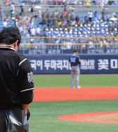 잠실야구장, '현충일 순국선열 향한 묵념'