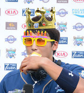 2013.06.06 17: 36NC 나성범,'왕관쓰고 건강음료 세리머니'