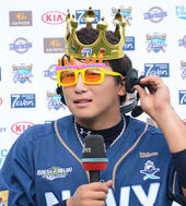 2013.06.06 17: 37나성범,'왕관쓰고 방송 인터뷰중'