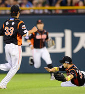 2013.06.07 20: 23김재호,'이번에는 송구가 높았어'