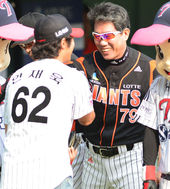 2013.06.08 17: 18김시진 감독과 인사 나누는 배우 안재욱