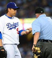 2013.06.08 12: 414회초 실점한 류현진, '공 바꿔주세요'
