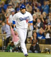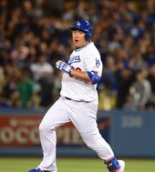 3루타 치고 득점까지 올린 류현진에 기립박수 보내는 다저스 팬들