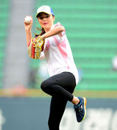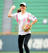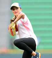 2013.06.13 18: 35미란다 커, '핑크 유니폼 입고 멋진 시구'
