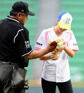 2013.06.13 18: 44미란다 커, '핑크빛 미소, 마운드에 환해 졌어요'