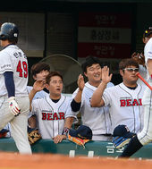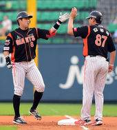 2013.06.19 19: 06민병헌-이종욱,'신나는 동점 득점 하이파이브!'