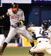2013.06.19 20: 09홈쇄도 정성훈,'아, 다리가 걸렸네'
