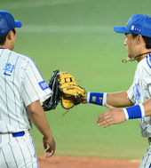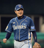 기뻐하는 손민한,'오늘도 승리가 보여'