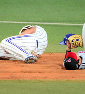 2013.06.21 19: 35충돌 후 그라운드에 쓰러진 박한이-오지환