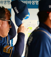 2013.06.23 19: 12김경문 감독, '모자 고쳐쓰고'