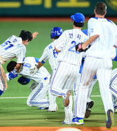 끝내기 정병곤,'화끈한 끝내기 세레모니를 당해'