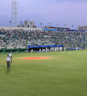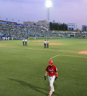 판정 번복에 항의하며 퇴장하는 김주찬과 텅빈 그라운드