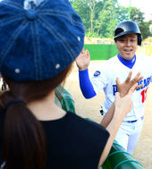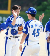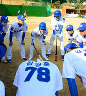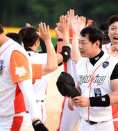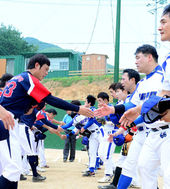 경기에 앞서 인사 나누는 장작불야구단-조마조마