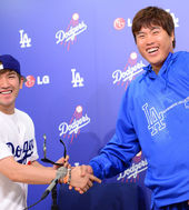 2013.06.30 15: 11다저 스타디움 찾은 이민우,'류현진! 7승 실패, 너무 상심마'