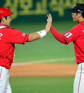 2013.07.09 22: 13정상호-박희수,'오늘도 승리했어'