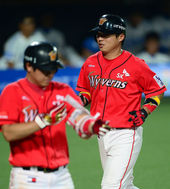 2013.07.09 21: 29최정-박재상,'몸에 맞는 볼로 득점'