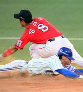 2013.07.10 19: 16정근우-정현,'아웃이냐? 세이프냐?'