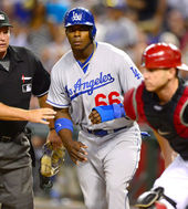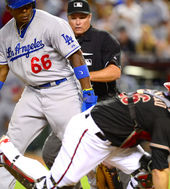 2013.07.10 12: 17홈태그아웃 푸이그,'몬테로! 오늘도 한번 해보자는거야?'