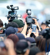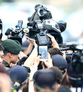 2013.07.10 08: 32취재진에 둘러싸여 팬들에게 전역 신고하는 비
