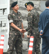 2013.07.10 08: 43군 전역한 비, '상급자와 인사 나누며'