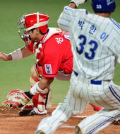 2013.07.10 20: 54정상호-박한이,'누가 더 빠른가'