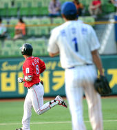 2013.07.11 19: 02조동화,'근우야, 솔로 홈런 축하해'