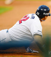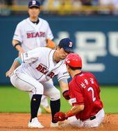 2013.07.13 19: 21홍성흔,'헤드퍼스트 슬라이딩! 번트안타 성공!'