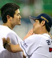 2013.07.16 22: 17봉중근 격려하는 김재민-이병규