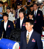 2013.07.18 23: 15'동아시안컵' 출전차 입국한 북한 여자 축구 대표팀