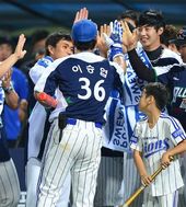 2013.07.18 22: 00'홈런레이스 우승' 이승엽, '은혁아, 아빠 실력 봤지~'