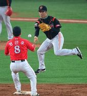 2013.07.19 20: 08신본기, '(정)근우선배, 공 받으세요~'