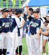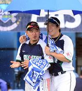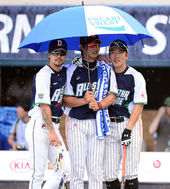 2013.07.19 17: 09올스타전 송승준-김현수,'갑자기 이게 왠 비야'