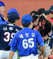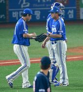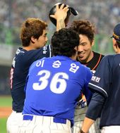 2013.07.19 21: 06양의지-김대우, '전준우 만세~'