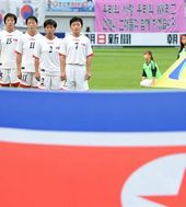 2013.07.21 18: 31한국-북한 국기 바라보는 북한 대표팀